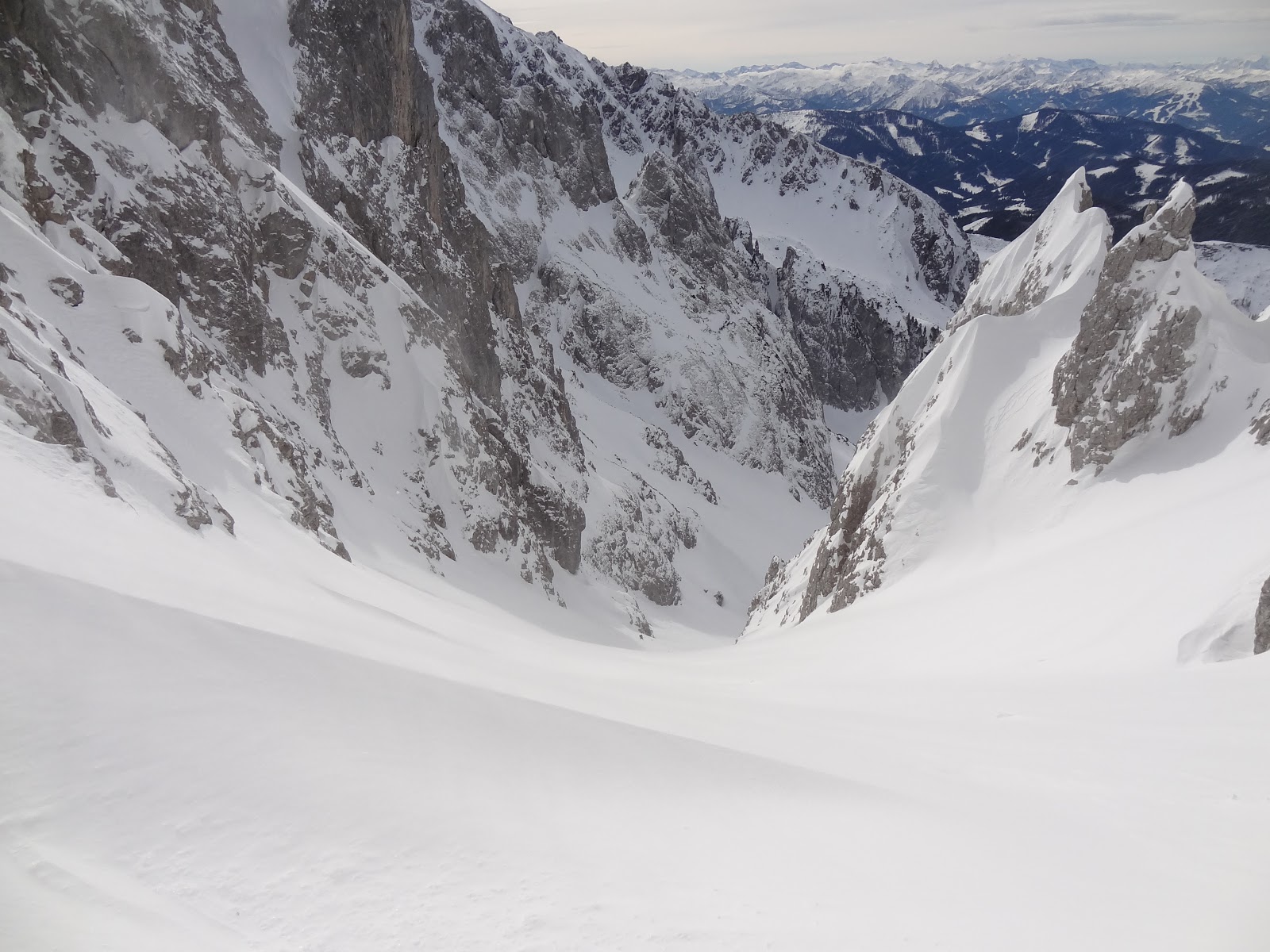 Im Winter 2007/2008 versuchten wir uns als völlige Skitouren – Neulinge im Weitkar. Der extreme Schneefall vom Vortag machte uns jedoch einen Strich durch die Rechnung und wir kehrten um. Seitdem nehme ich mir diese Tour jedes Jahr vor, habe es aber, wegen zu schnell entretenden Frühlings und dem daraus folgenden Kletterdrang, nicht geschafft zurückzukehren.