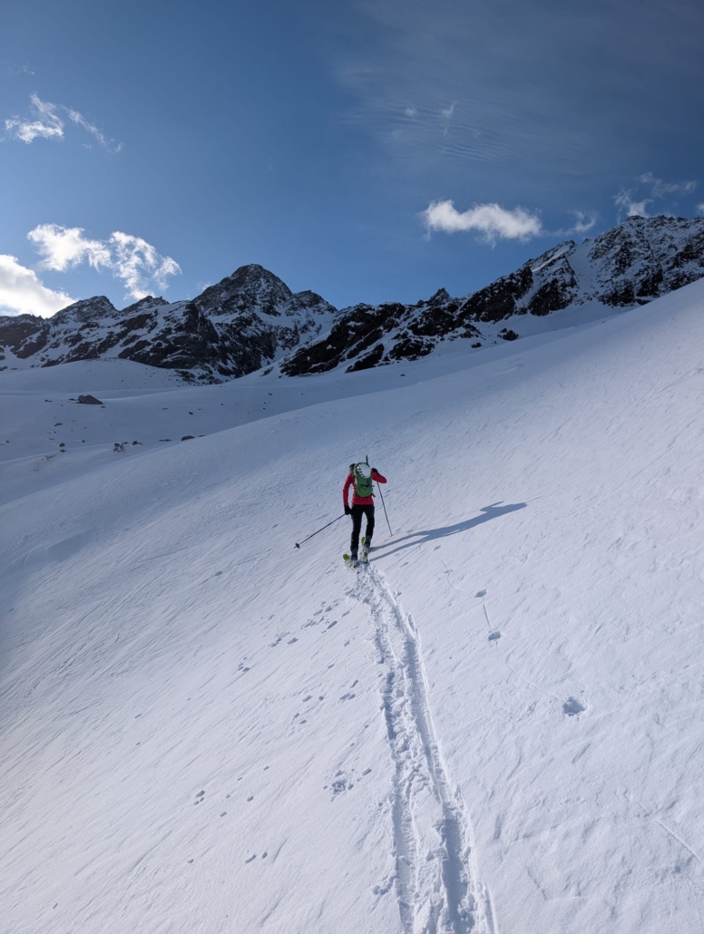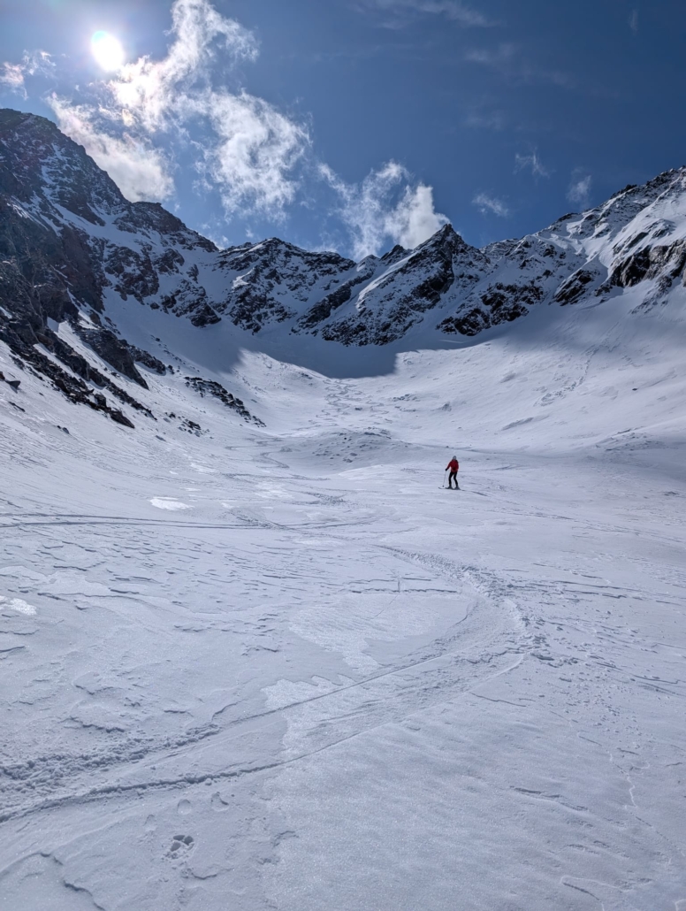 Bei so lässigen Touren waren die 2 Stunden Aufstieg zur Hütte in Skischuhen aufgrund des Schneemangels schnell vergessen.